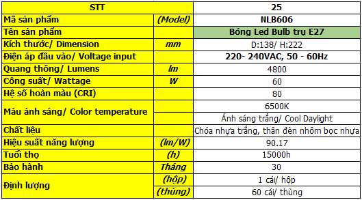 Bóng Đèn LED Bulb Trụ Công Suất Lớn NLB606 60W – Ánh Sáng Trắng Nanoco