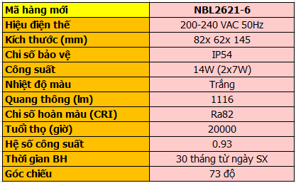 Đèn Gắn Tường Trang Trí Ngoài Trời LED NBL2621-6 Ánh Sáng Trắng