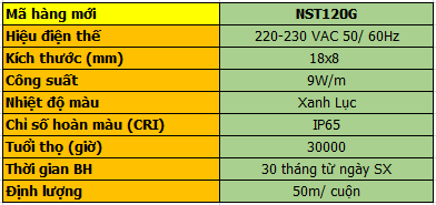 Đèn LED Dây Nanoco NST120G 9W – Ánh Sáng Xanh Lục