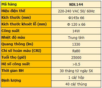 Đèn LED Downlight Dày 14W NDL144 Ánh Sáng Trung Tính – Angel 90°