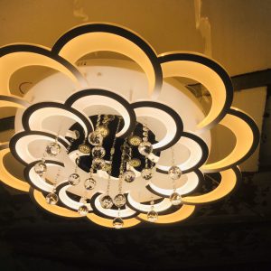 • Chất liệu: Viền nhôm, bọc Mica, thả pha lê