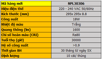 Đèn LED Panel Office Ốp Trần Loại Tấm 18W NPL30306 – Ánh Sáng Trắng