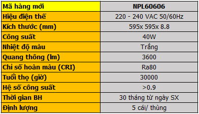 Đèn LED Panel Office Ốp Trần Loại Tấm 40W NPL60606 – Ánh Sáng Trắng Nanoco