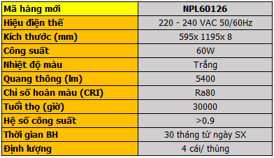 Đèn LED Panel Office Ốp Trần Loại Tấm 60W NPL60126 – Ánh Sáng Trắng