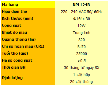 Đèn LED Panel Ốp Trần Nổi Loại Tròn 12W NPL124R – Ánh Sáng Trung Tính