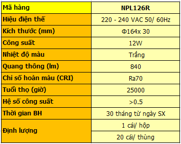 Đèn LED Panel Ốp Trần Nổi Loại Tròn 12W NPL126R – Ánh Sáng Trắng