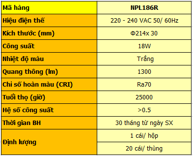 Đèn LED Panel Ốp Trần Nổi Loại Tròn 18W NPL186R – Ánh Sáng Trắng