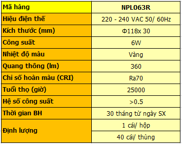 Đèn LED Panel Ốp Trần Nổi Loại Tròn 6W NPL063R – Ánh Sáng Vàng