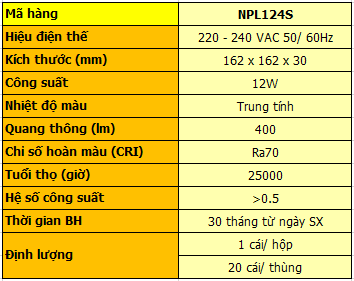 Đèn LED Panel Ốp Trần Nổi Loại Vuông 12W NPL124S – Ánh Sáng Trung Tính