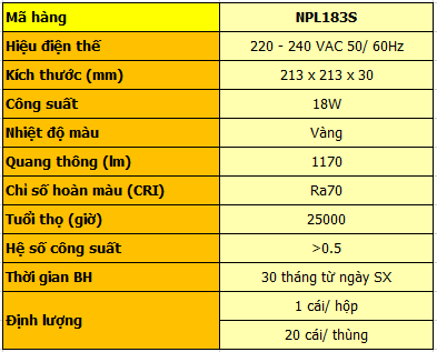 Đèn LED Panel Ốp Trần Nổi Loại Vuông 18W NPL183S – Ánh Sáng Vàng