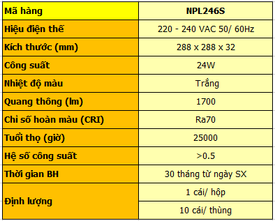 Đánh giá Đèn LED Panel Ốp Trần Nổi Loại Vuông 24W NPL246S – Ánh Sáng Trắng Nanoco