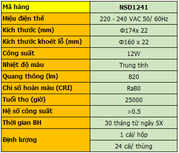 Đèn LED Slim Downlight 12W NSD1241 Ánh Sáng Trung Tính – Angel 120°