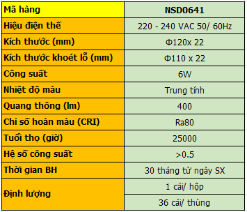 Đèn LED Slim Downlight 6W NSD0641 Ánh Sáng Trung Tính – Angel 120° Nanoco