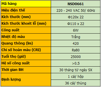 Đèn LED Slim Downlight 6W NSD0661 Ánh Sáng Trắng – Angel 120°