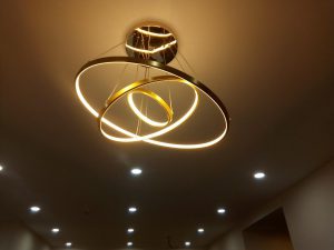 Đèn thả 3 vòng thường được sử dụng trang trí phòng khách với vị trí đặt là ngay trên bàn tiếp khách. Thường dùng cho bàn ghế sofa hiện đại