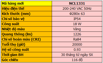 • Quang thông: 1600lm – 84.2lm/W – CRI: Ra85